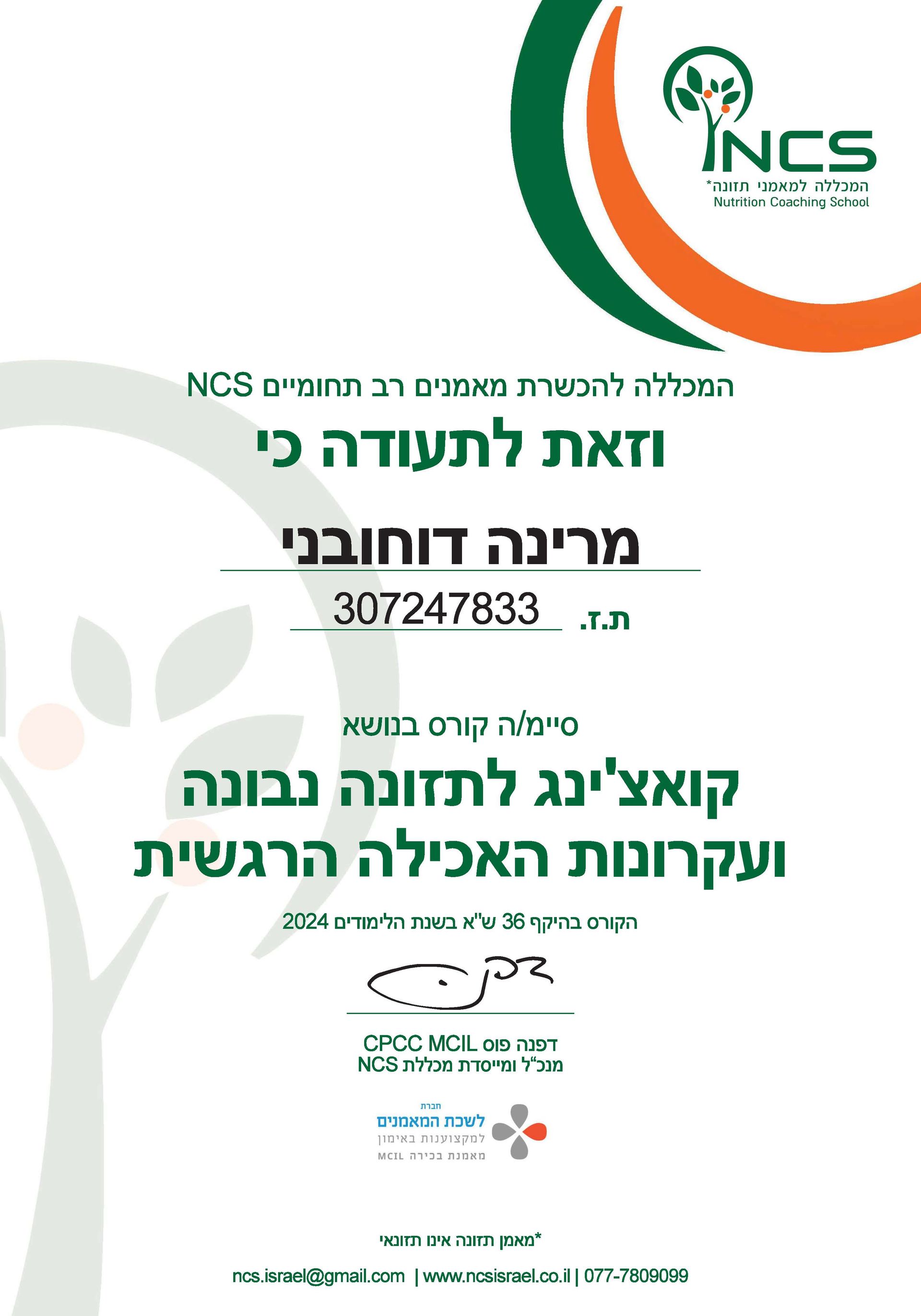 אני תזונאית קלינית מוסמכת משנת 2009 ומאמנת לאורח חיים בריא.