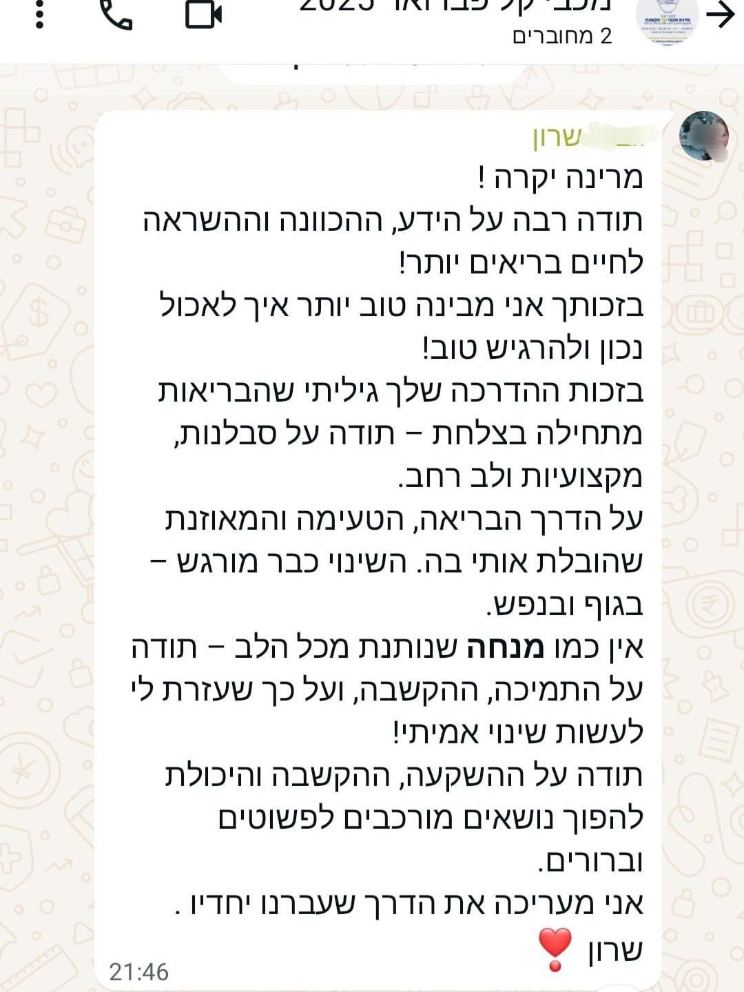 - קבוצת וואטאפ לשאלות, לתמיכה, לשיתוף ומתכונים.
